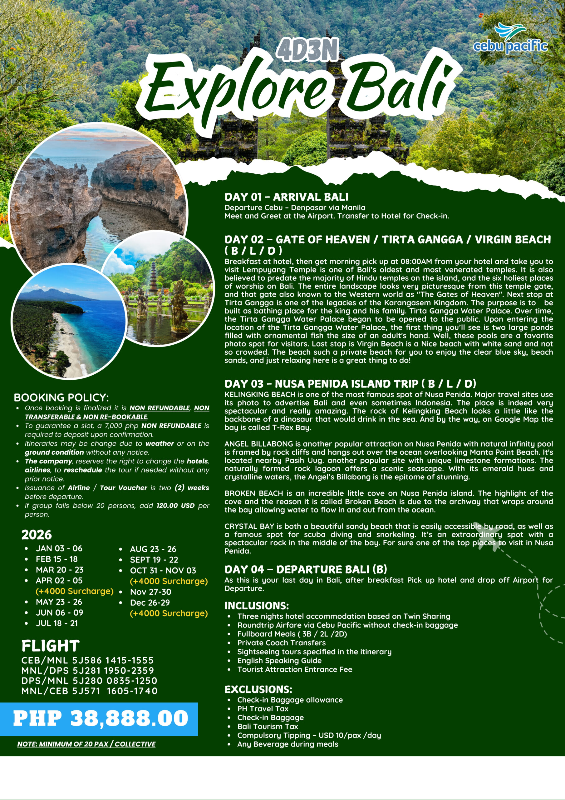 - 26-29 DEC (Add PHP 4,000/pax has surcharge)